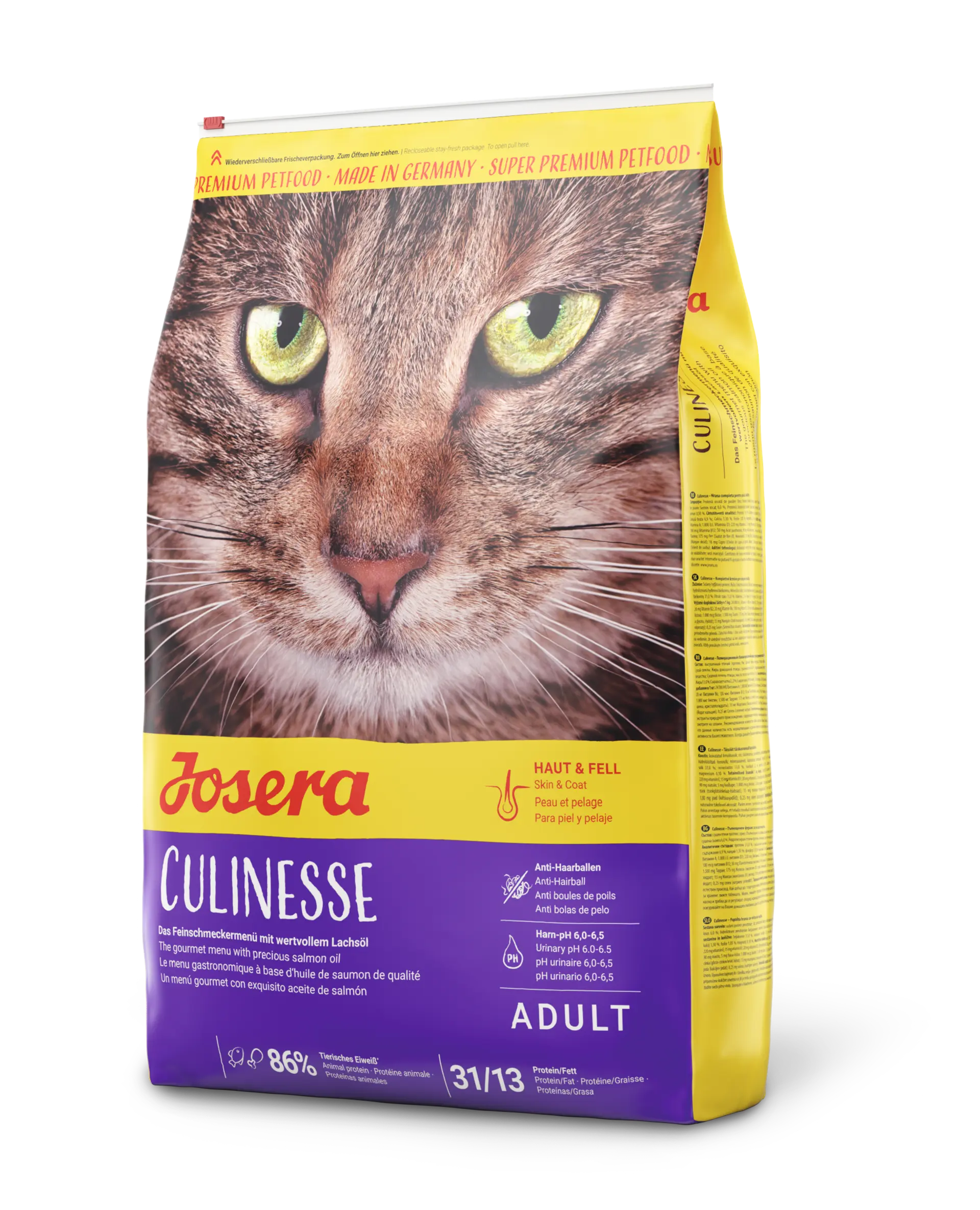 Josera Culinesse with fine salmon protein is just the thing for demanding velvet paws. Its balanced recipe means that Josera Culinesse is highly digestible and particularly tasty.