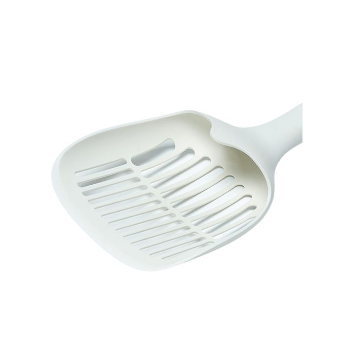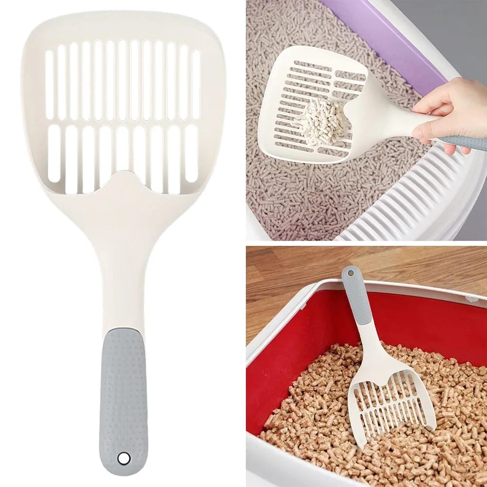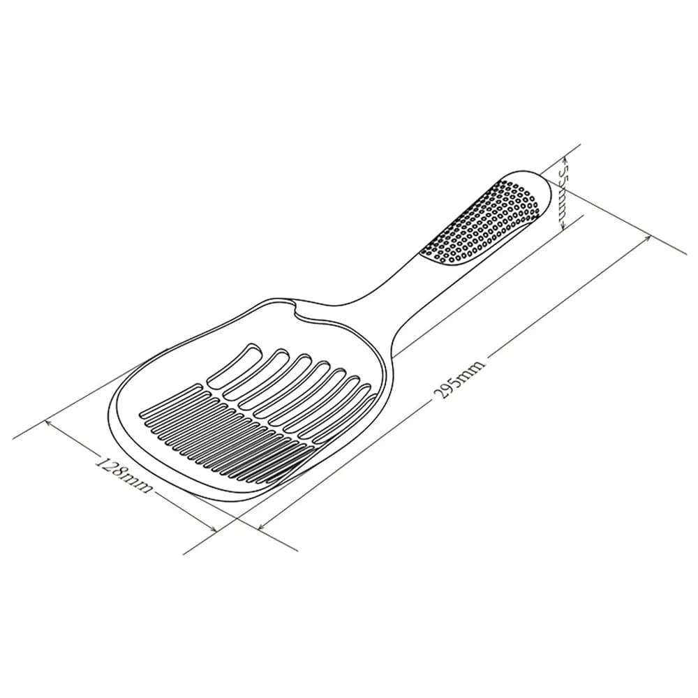 Designed with an ergonomic handle and a large curved surface for reducing spills and cleaning time. This litter scoop is made to fit on the side of the Buddy & Belle Deluxe Cat Litter Box.