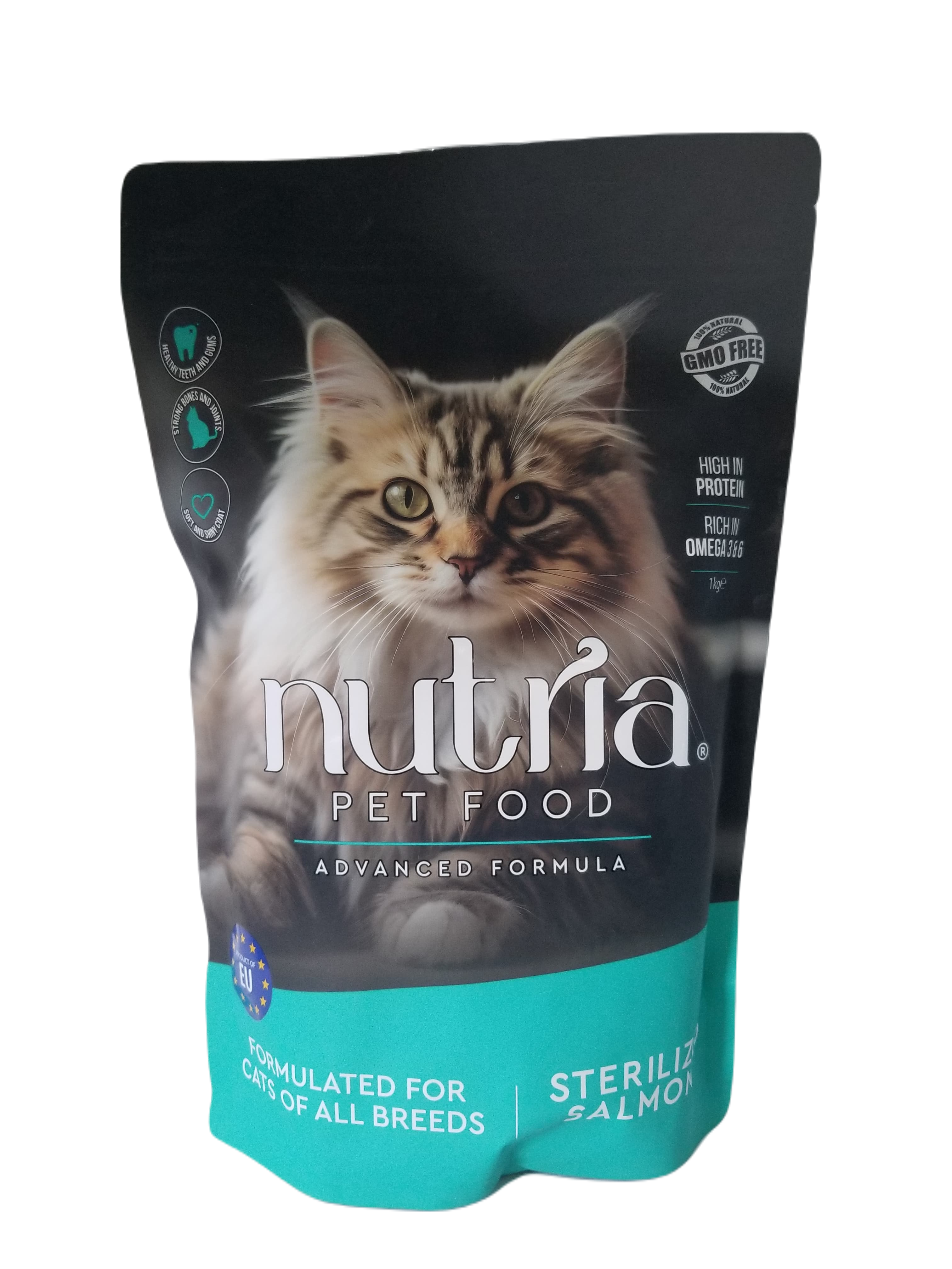 Nutria cat food is enriched with organic calcium and phosphorus, which are essential for maintaining the health and hygiene of your cat’s teeth and mouth. Regular consump-tion supports cleaner teeth and fresher breath.