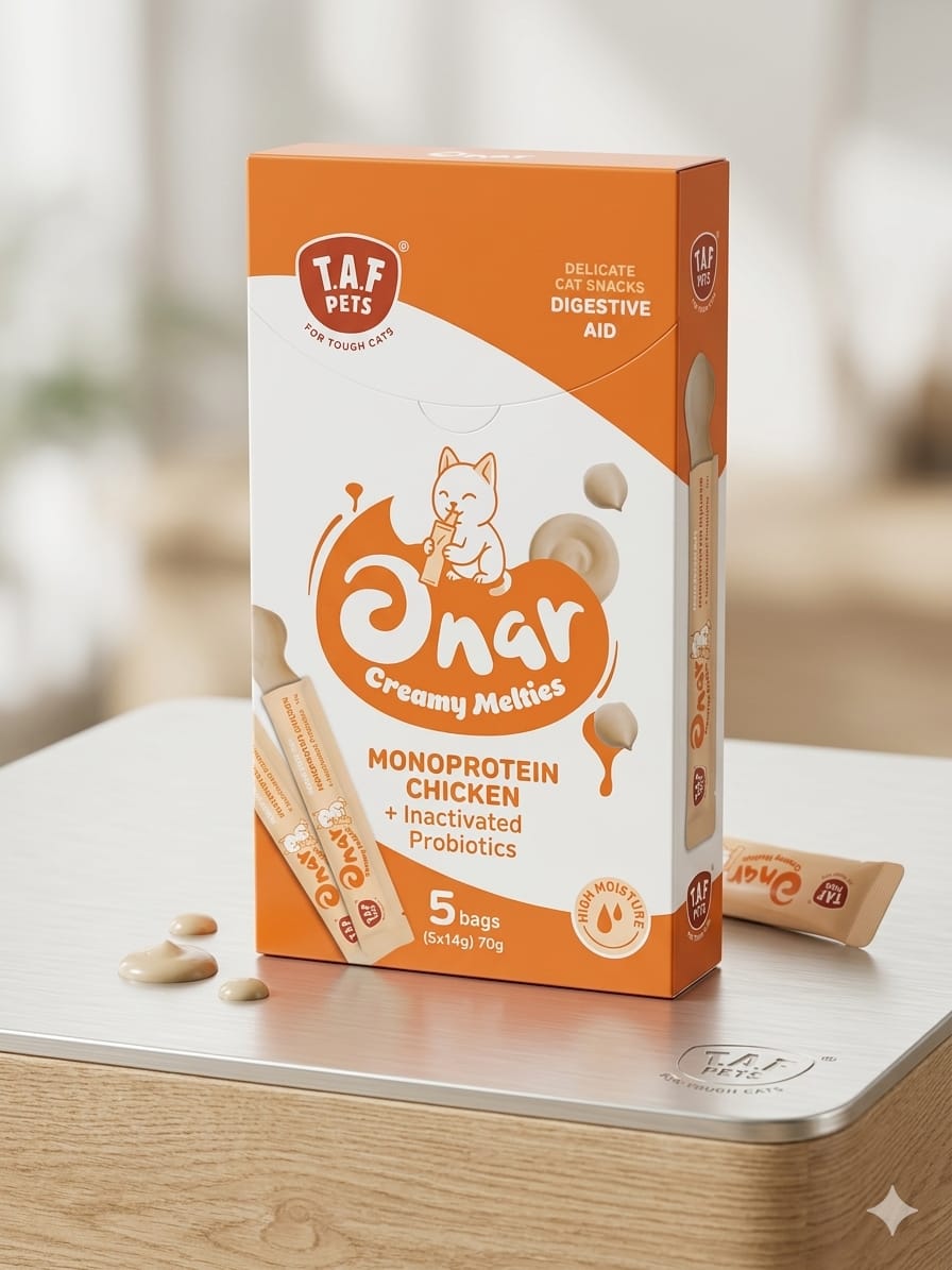 Support your cat’s wellness with the smooth and savory Onar Creamy Melties. This “Digestive Aid” formula is a delicate, lickable snack specifically designed to be gentle on the stomach while providing a burst of hydration and flavor.