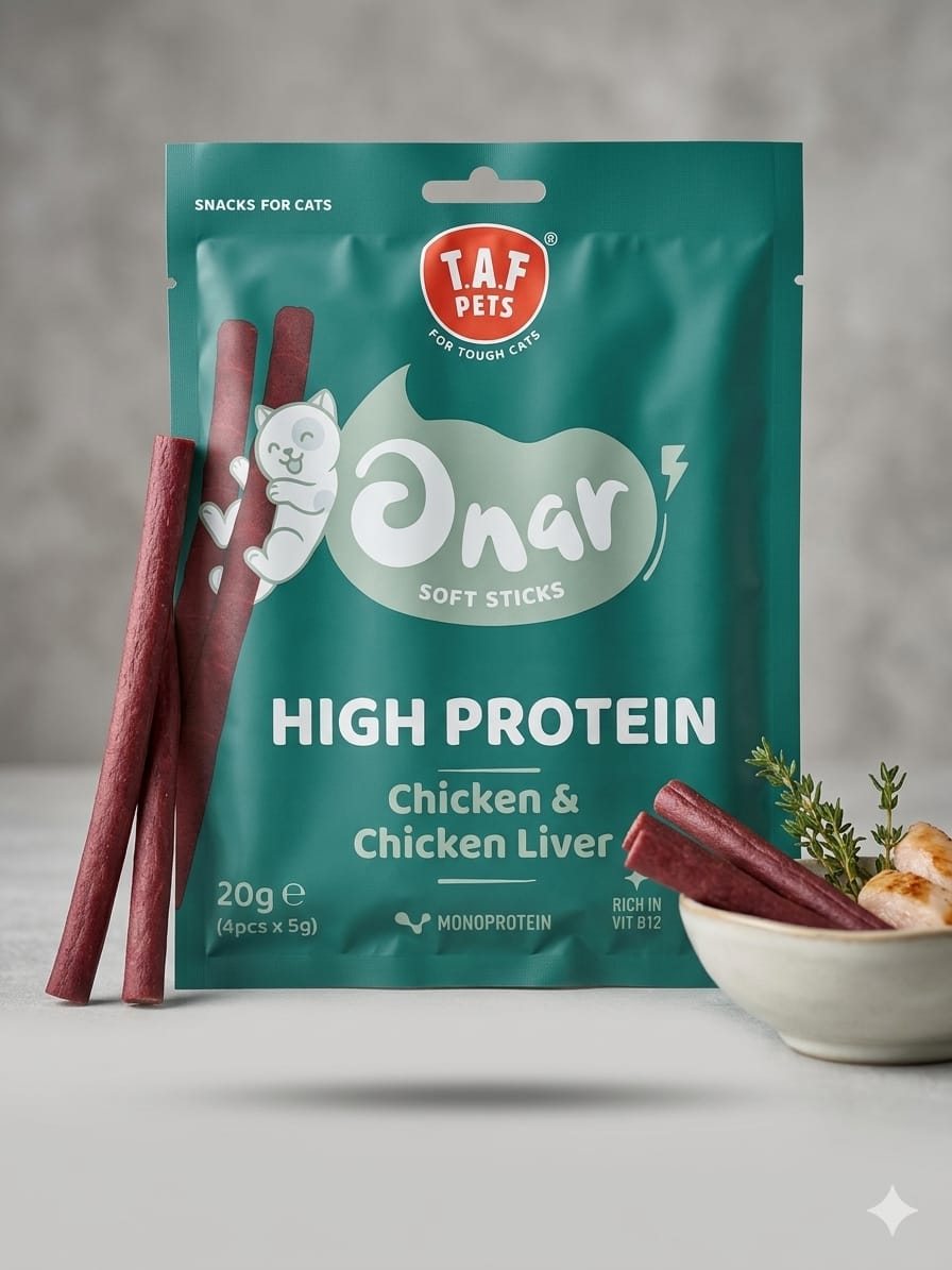 Satisfy your cat’s natural cravings with the rich, savory taste of Onar Soft Sticks. This formula features a high-protein blend of Chicken and nutrient-dense Chicken Liver, providing a flavorful reward that even the pickiest “tough cats” will love.
